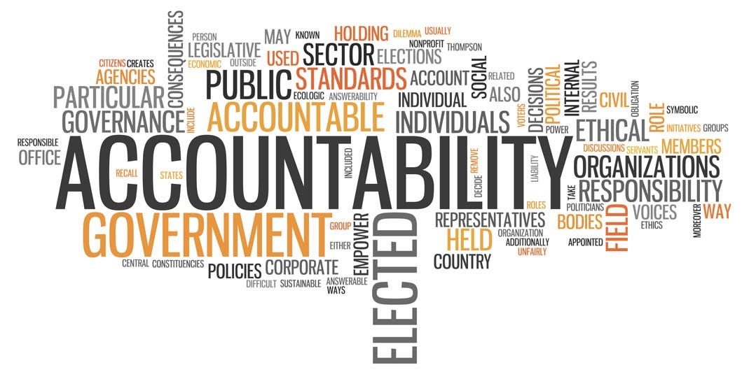 In conclusion the point is, if there is accountability the people are bound to explain and justify their policies, meaning their lines of action and decision that affect other people. Without accountability, mostly there are disasters.